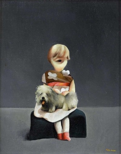 Título: 'Menino de negro e rosa' e 'Menina com cão'