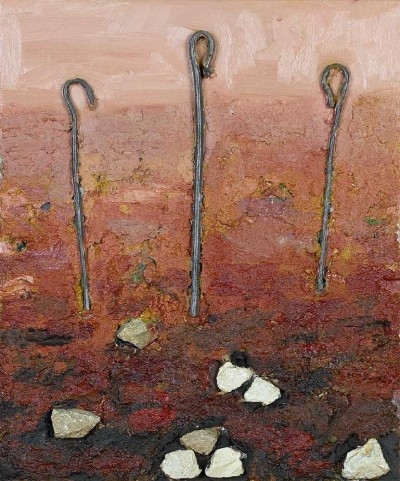 Técnica: Técnica mista com colagens sobre madeira