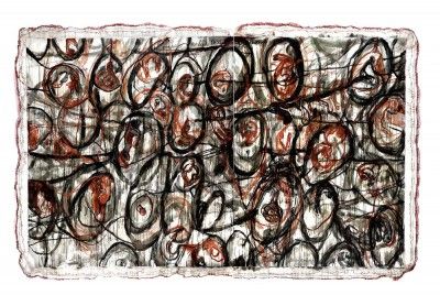 Técnica: Díptico a óleo, lápis-de-cor e folho em tecido e lã sobre tela